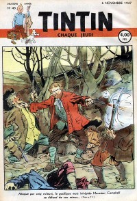 En 1947, Le Journal de Tintin s’affirme comme la grande revue belge pour la jeunesse et s’installe durablement dans le paysage de la bande dessinée européenne. Si les deux premiers numéros conservent un reliquat de l’année précédente, la régularité s’installe rapidement. Chaque fascicule, au format 21 sur 29,5 centimètres, compte seize pages vendues quatre francs belges, à l’exception de quelques numéros spéciaux portés à vingt-quatre pages et proposés à cinq francs.